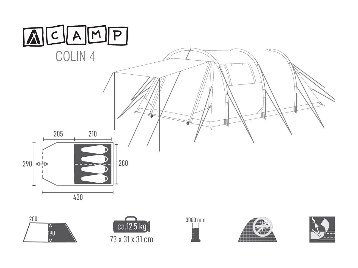 De Acamp Collin 4 is een fijne tent om mee op een camping te staan maar ook een ideale tent om mee rond te reizen of een festival te bezoeken, hij is snel neer te zetten en ook snel weer op te pakken.
