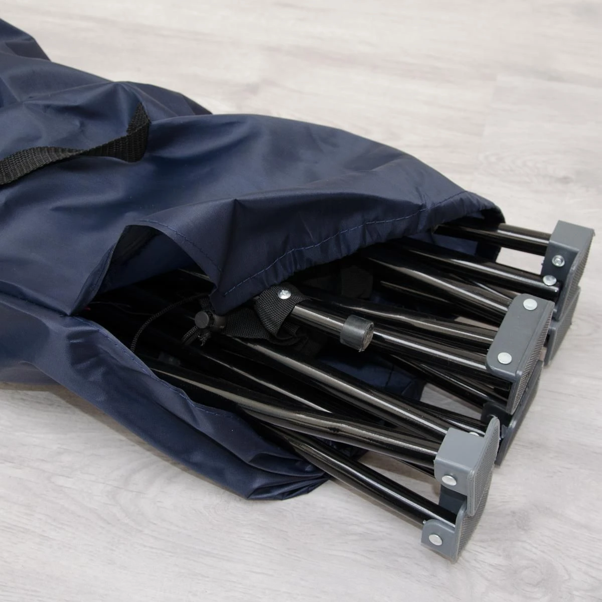Het hoogwaardige stalen frame is bekleed met sterk, slijtvast en resistent Oxford nylon. De bekleding van de opklapbare bank is eenvoudig te reinigen en weerbestendig. De klapbank is al gemonteerd – er is geen montage nodig.