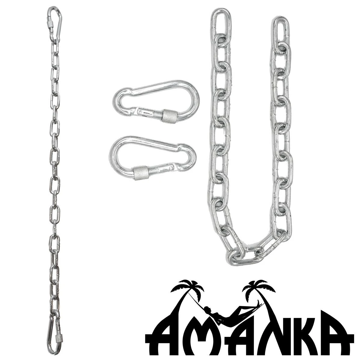 Onze Power Set voor hangstoelen, zonnezeilen en schommels: De sterke verlengketting zorgt voor de perfecte hoogte – de schroefkarabijnhaken voor een veilige houvast.