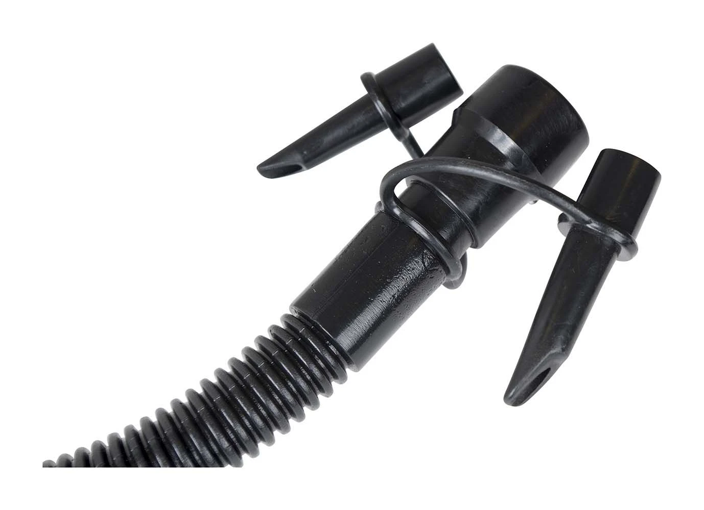 Een voetpomp met 5 liter inhoud. Voor het opblazen en leeg laten lopen van een luchtbed, opblaasboot, speelgoed etc. Speciaal ontworpen zodat deze pomp geen hoge pieptoon heeft gedurende het oppompen. Inclusief 3 verloopstukken.