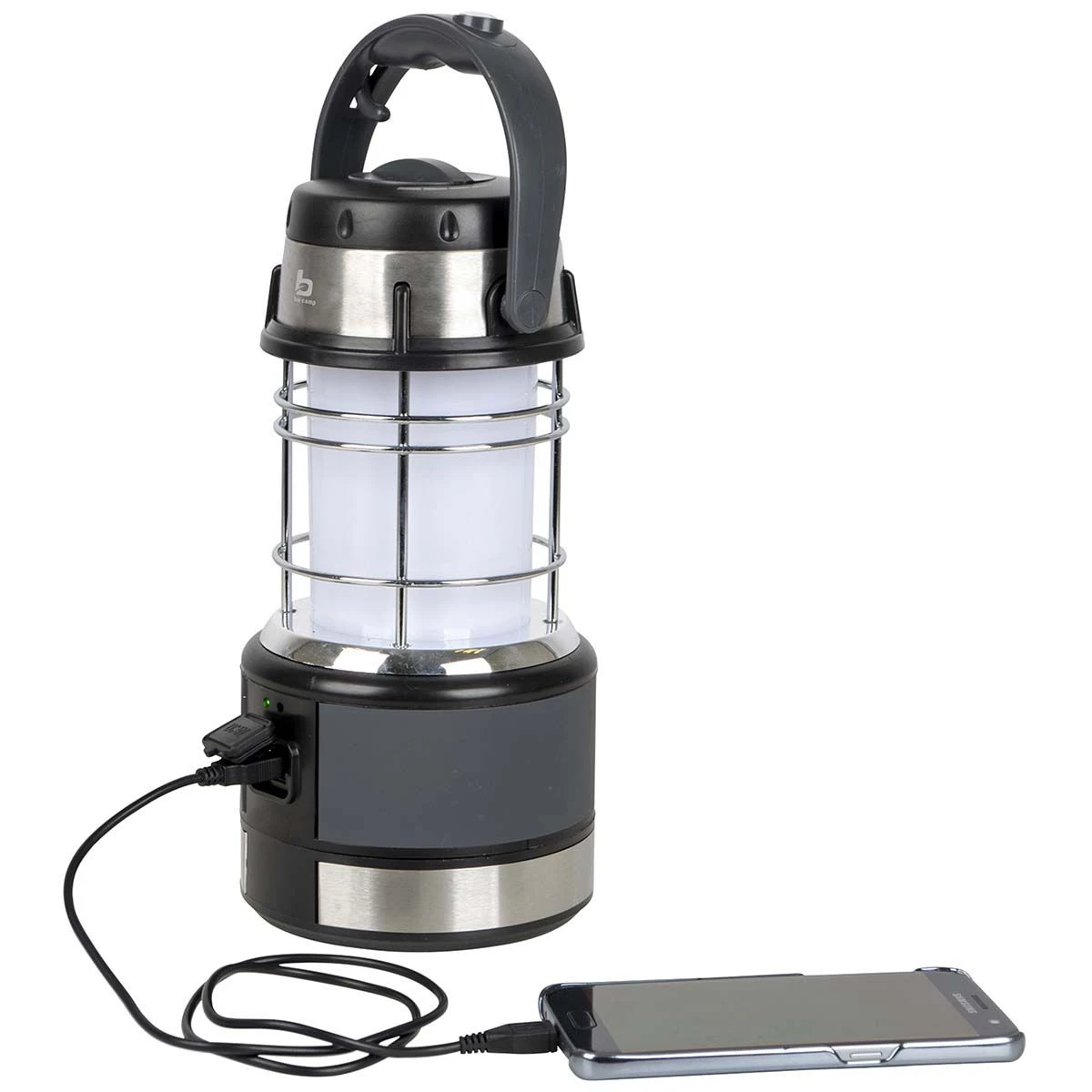 Een robuuste tafellantaarn. Door high power LED’s met een warme lichtkleur, de traploze dimmer en de witte matte kap worden een aangename verlichting gerealiseerd. De ingebouwde Li-ion accu kan met de meegeleverde USB kabel opgeladen worden. De accu kan tevens worden gebruikt om bijvoorbeeld een mobiele telefoon op te laden via de USB uitgang. In het hengsel zit een kompasje en een inklapbaar ophanghaakje. Brandduur: 100-9 uur. Lichtopbrengst: 8-220 lumen.