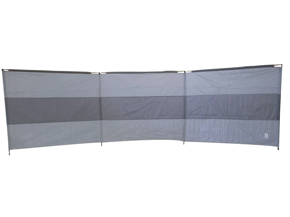 De Bo-Camp 3-vaks windscherm Caira is dankzij de bovenliggers extra stevig. Dit 3-vaks windscherm van polyester wordt geleverd met haringen, scheerlijnen en een draagtas.