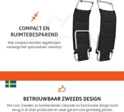Productspecificaties -Merk: Campout-Materiaal zitting: Gepolsterd netweefsel – comfortabel en sneldrogend-Materiaal onderstel: Aluminium-Kleur: Zwart-Afmeting zitting: 48 x 76 cm-Gewicht: 1,2 kg-Maximaal draagvermogen: 30 kg-Ingeklapt is dit een plat pakket en dus gemakkelijk te vervoeren en op te bergen!