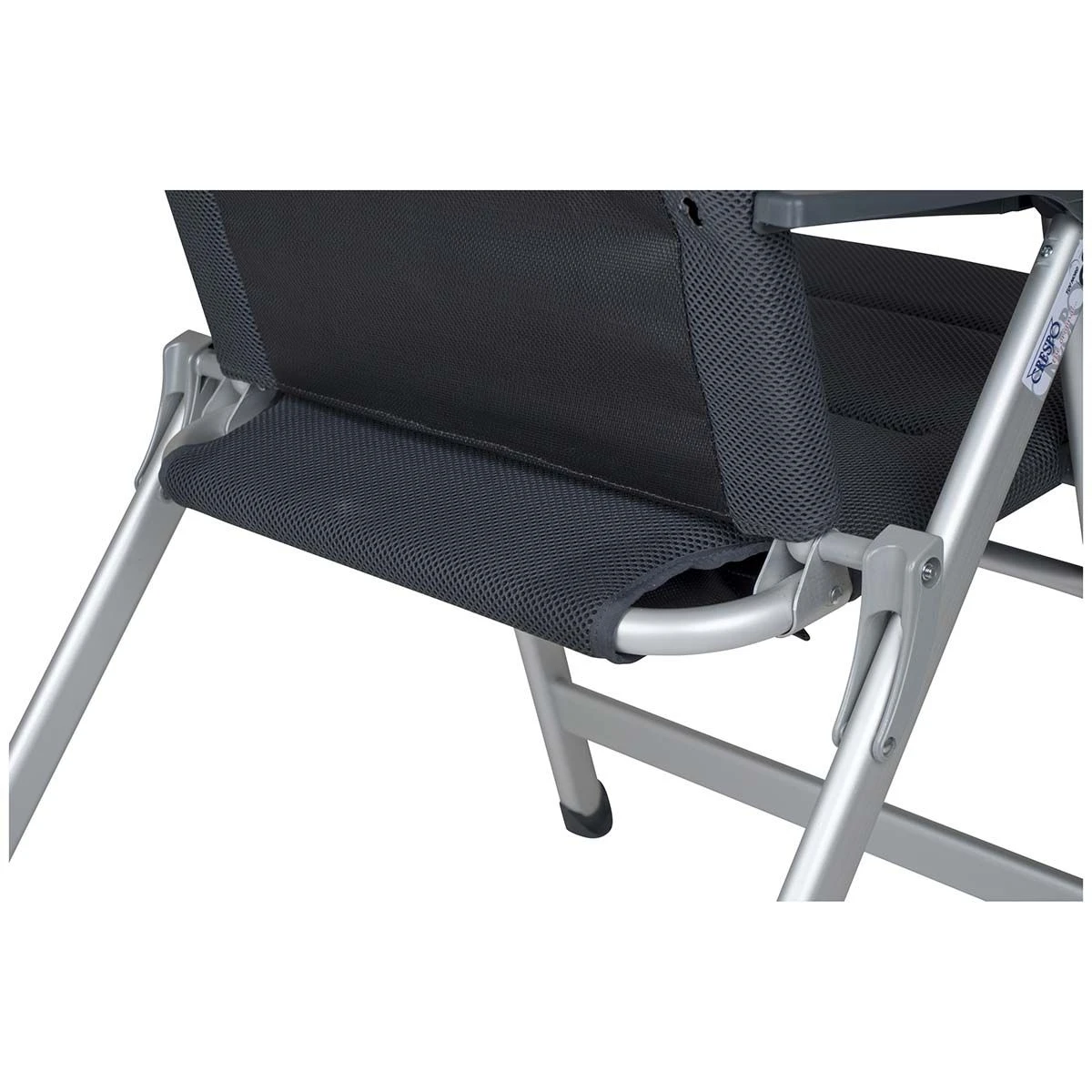 Een zeer luxe en één van de meest comfortabele standenstoelen! Deze stoel is voorzien van een extra dikke en stevige 3D gepolsterde stof. Daarnaast loopt deze gepolsterde stof volledig om het frame heen. Deze luxe stof wordt aan de achterkant van de zittingsbuis heen geslagen en aan de voorzijde loopt de stof door naar de onderzijde, waardoor een zeer aangename zit is gecreëerd. Het hoofdeinde van de rugleuning heeft een extra dikke vulling. De schuimvulling heeft een open celstructuur waardoor er geen vocht wordt vastgehouden. Hierdoor droogt deze stoel sneller dan stoelen met een traditionele schuimvulling. De rugleuning van deze stoel is in 7 standen verstelbaar en daarnaast is deze stoel voorzien van een traploos verstelbaar hoofdsteun. De rugleuning (ruglengte: 65-83 cm), zitting en armleggers zijn ergonomisch gevormd voor een maximale ondersteuning. Het geanodiseerde H-frame zorgt voor een hoge stabiliteit en de stoel is zeer compact mee te nemen, namelijk tot 50% minder pakvolume in vergelijking met andere kampeerstoelen. Ook wel een stoel waarbij aan alle details is gedacht en het aan comfort niet zal ontbreken.