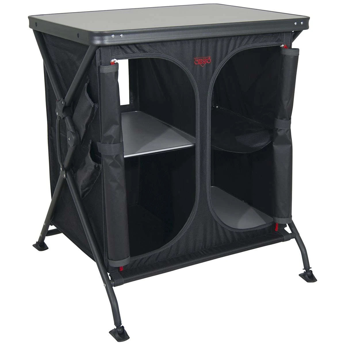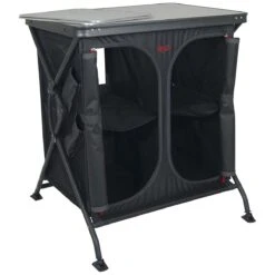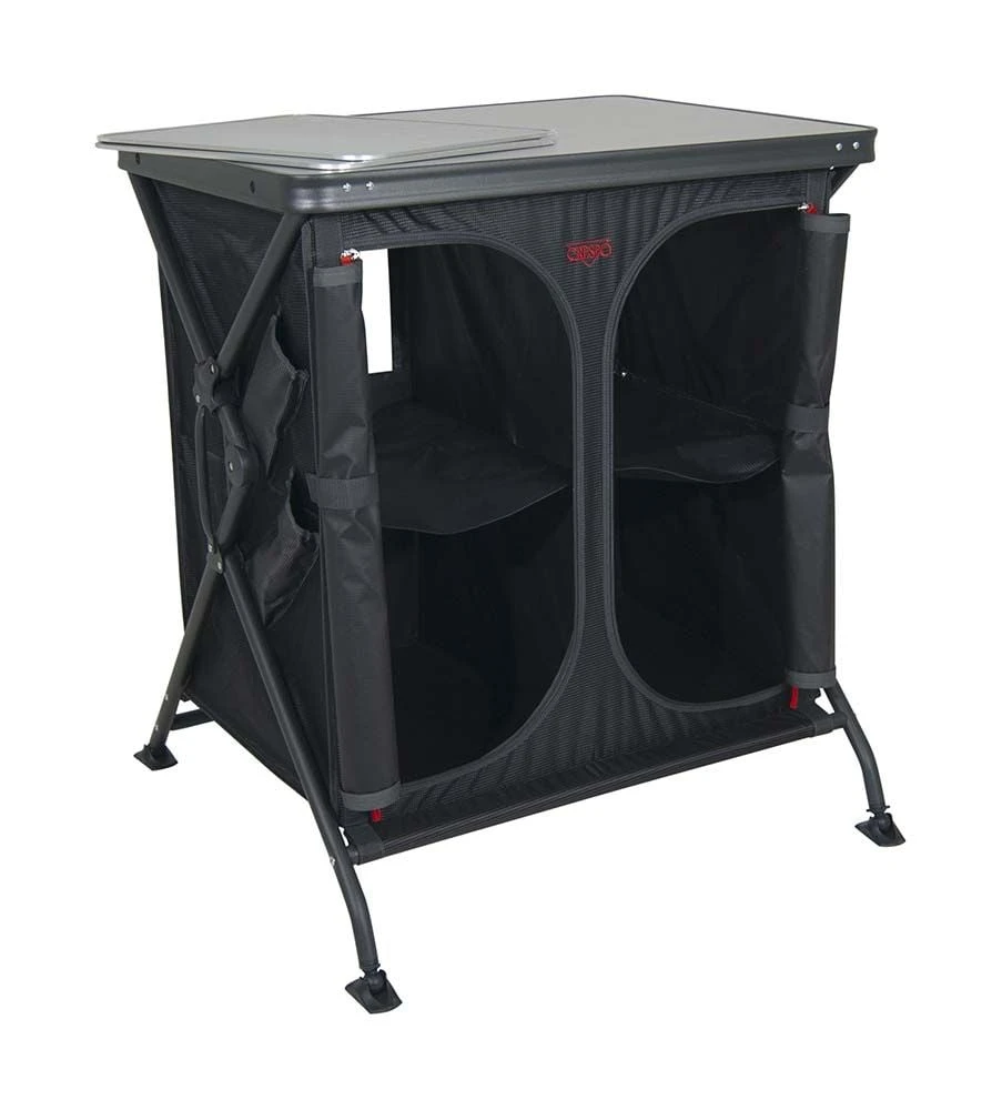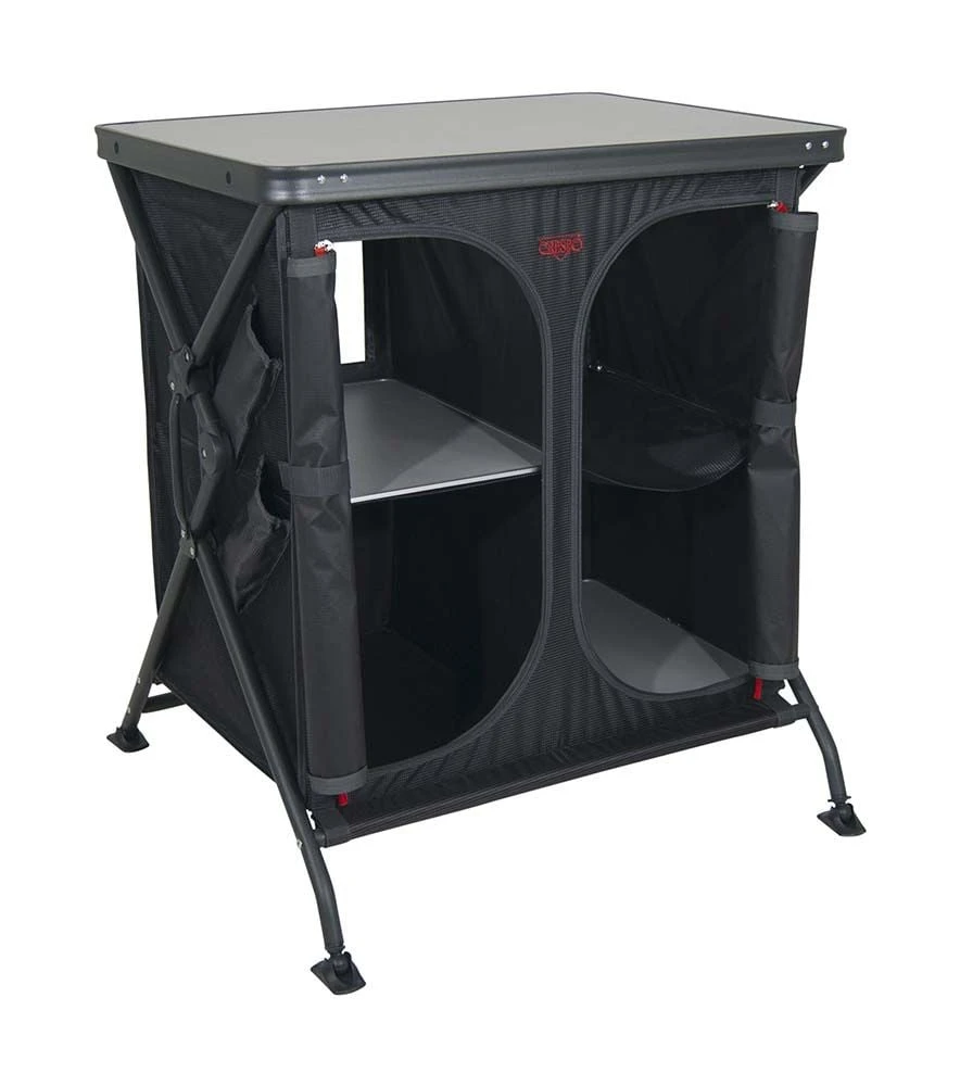 Met een hittebestendig en watervast melamine oplegblad en een robuust aluminium frame, is deze kast ontworpen voor gemak en stabiliteit, ongeacht de ondergrond.