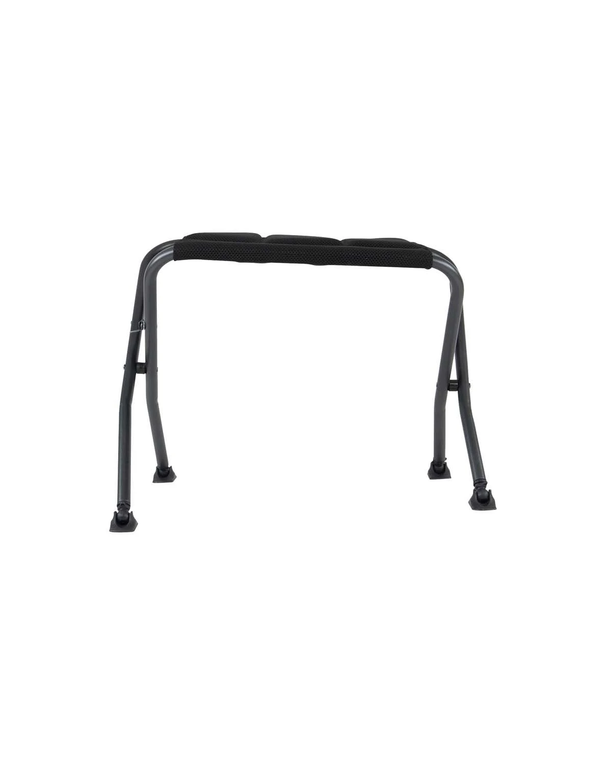 Daarnaast is de voetensteun ergonomisch gevormd en voorzien van een bijzonder stabiel frame. Na gebruik kan de kruk zeer plat en compact worden opgevouwen.