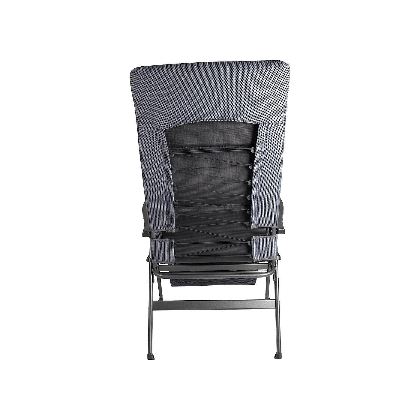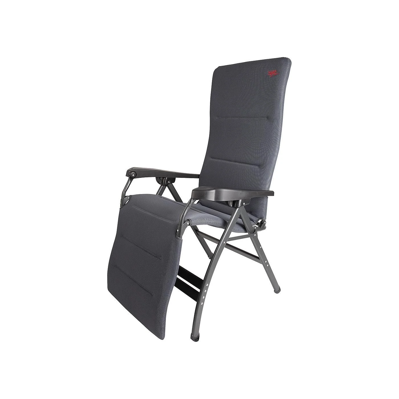 Een zeer luxe extra brede comfortabele ergonomische relaxstoel met hoofdkussen. Deze stoel biedt maximaal comfort doordat de stoel traploos verstelbaar is. Daarnaast is deze stoel voorzien van een gepolsterde 3D stof welke is bevestigd door middel van elastiek. De comfortabele vulling van deze stof is extra luchtdoorlatend en houdt geen vocht vast. Hierdoor is deze stoel sneller droog dan andere stoelen met een traditionele schuimvulling. Daarnaast zorgt de afwerking voor een stijlvolle uitstraling. Zowel de rugleuning als de armleggers zijn ergonomisch gevormd en de is stoel voorzien van een remsysteem om de stoel in iedere gewenste positie te fixeren. De stoel is voorzien van een geanodiseerd H-frame voor extra stabiliteit en stevigheid. De stoel heeft een extra brede, een extra diepe en een extra hoge zit. Ingeklapt is deze stoel zeer compact en daardoor gemakkelijk mee te nemen in de meegeleverde opbergtas.