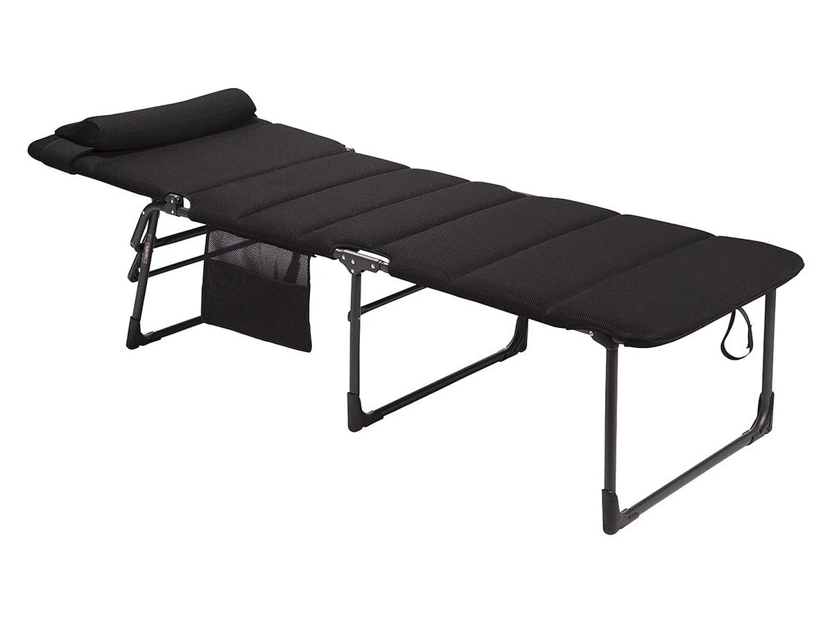 Dit ligbed is extra breed en biedt een gemakkelijke in- en uitstap. Aan de zijkant bevindt zich een handige organizer voor het opbergen van boeken, tijdschriften, een mobiele telefoon, enz. Na gebruik is het ligbed eenvoudig in te klappen en te vervoeren, zodat je het gemakkelijk kunt meenemen naar de camping of het strand.
