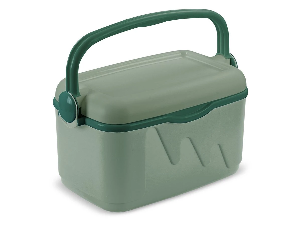 Deze compacte en lichte koelbox is perfect voor onderweg en biedt voldoende ruimte voor drankjes, snacks en lunch. Het stevige handvat zorgt niet alleen voor comfortabel dragen, maar vergrendelt ook het deksel wanneer je het omlaag klapt – zo blijft alles veilig afgesloten. Bovendien is de koelbox gemaakt van duurzaam kunststof, waardoor hij eenvoudig schoon te maken is en lang mee gaat.