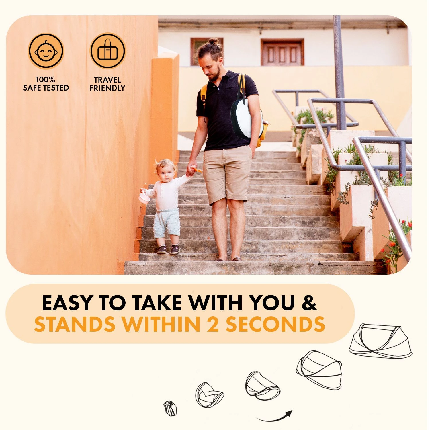 De Infant Baby is een superhandig pop-up reisbedje dat nog geen 1 kilo weegt en binnen 2 seconden is opgezet. Daarmee is deze een stuk gebruiksvriendelijker dan andere campingbedjes die vaak onhandig, groot en zwaar zijn. In de Infant Baby ligt je baby veilig en afgeschermd voor insecten. De bovenzijde is namelijk voorzien van een paneel van gaas dat je eenvoudig dicht kunt ritsen. Door de zeer kleine maaswijdte komt hier geen mug of ander insect meer doorheen.