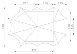 De binnentent van deze piramidetent wordt afgescheiden d.m.v. een separatiewand. Voorzien van een ingenaaide vaste kuip van zwaar gecoat (bisonyl) polyester 550 gr/m² en een separatiewand, waardoor de tent geheel afgesloten kan worden voor invloeden van buitenaf. Deze piramidetent heeft dus geen losse binnentent. De afspanpunten hebben geen scheerlijntjes maar sjorbanden met oersterke gespen. Een kwaliteitstent tegen een zeer aantrekkelijke prijs.