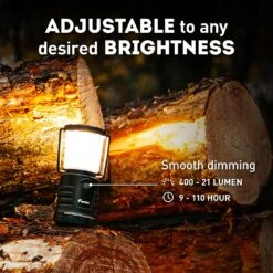 Het aantal lumen varieert van 25 tot 250 lumen, de bundelreikwijdte bedraagt 19 meter en de batterij gaat 90 uur mee. Erg handig (en gezellig) als je ’s avonds nog voor de caravan zit te kletsen.