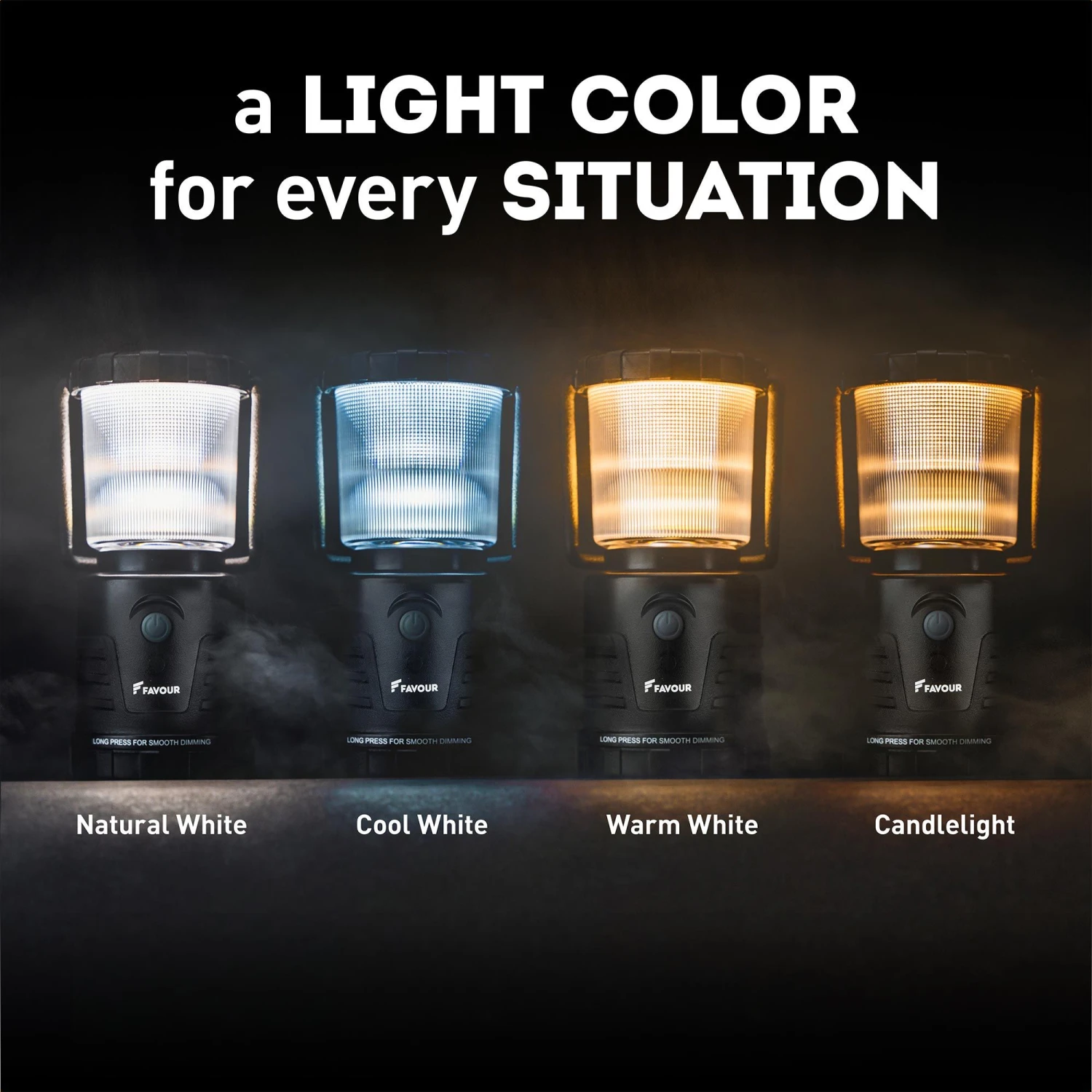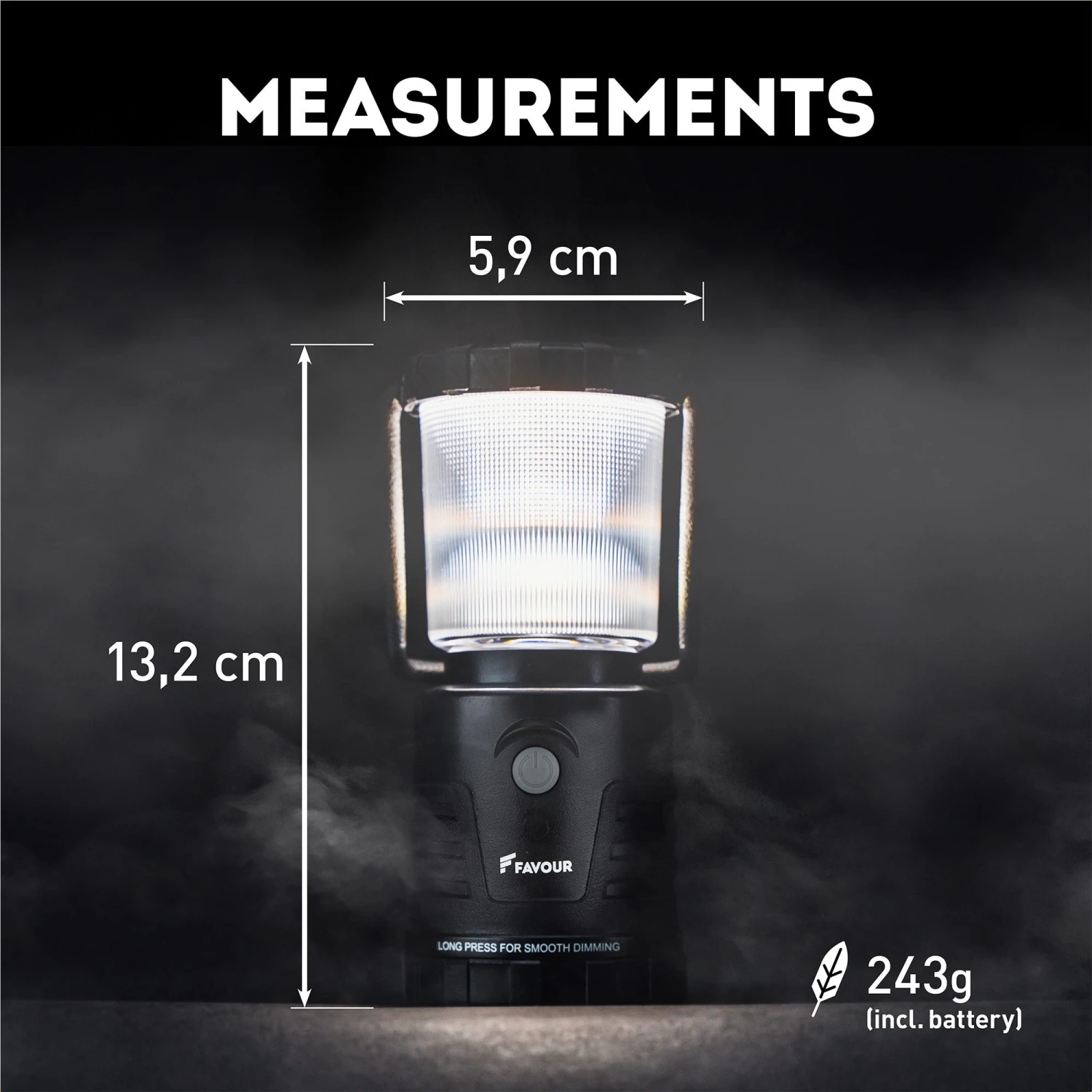 De L0541 van Favour is een lantaarn speciaal ontworpen voor kampeerders die graag een multifunctionele lamp met zich mee willen nemen én hem op willen hangen in hun tent, caravan of camper.