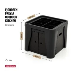 Een volledige keuken in slechts één kubieke meter. Je vervoert de Fjordsen Freyja Outdoor keuken gemakkelijk als compacte opbergbox waarin je al jouw pannen, borden en bestek kwijt kan.