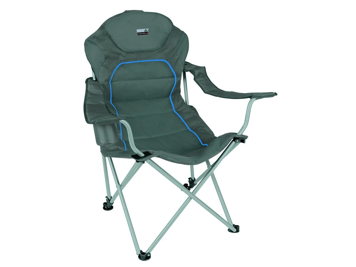 High Peak Alicante, vouwstoel tot 120 kg, gepolsterd, bekerhouder, verstelbare rugleuning, stabiel stalen frame, donkergrijs, extra breed, klapstoel, robuust, ideaal voor camping, festival, vissen, bbq, opvouwbare campingstoel incl. opberghoes met schouderriem, 62 x 60 x 105 cm 4,60kg