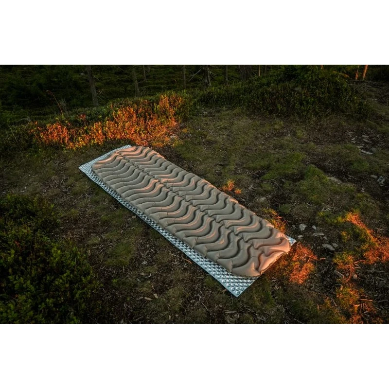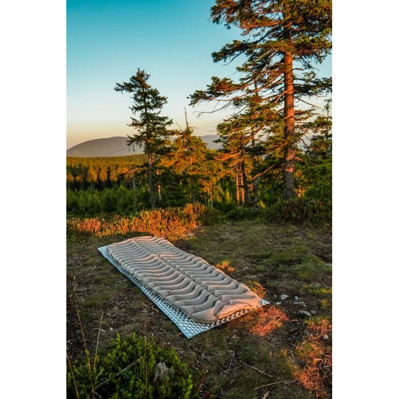 Een slaapmat voor een comfortabele nachtrust op elke ondergrond door de dikte van wel 6 cm. Het gebruikte materiaal is een zeer fijne, lichte en ademende 100% nylonvezel, die tegelijkertijd voldoende sterkte en flexibiliteit bereiken. Daarom is dit materiaal effectief bestand tegen scheuren of andere mechanische schade. En een mooie bijkomstigheid is dat het materiaal waterafstotend is.