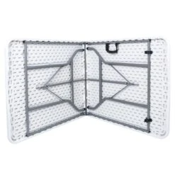 Plek tekort? Deze stevige vouwtafel pak je er snel bij wanneer je extra eters of een feestje hebt. De tafel doet ook prima dienst al campingtafel of als tuintafel. Het kunststof blad is vervaardigd uit HDPE, een stevig en duurzaam materiaal dat jaren mee gaat. Een tafellaken is niet nodig, want het waterdichte blad kan eenvoudig worden afgenomen met een vochtige doek. De kunststof doppen onder de poten voorkomen schade aan de vloer.
