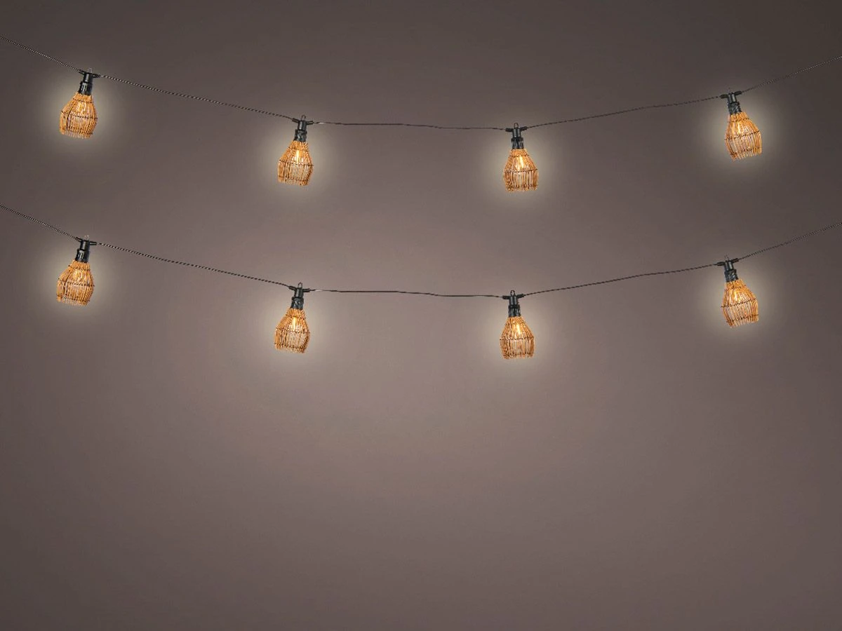 Deze lichtslinger bestaat uit 10 warm witte LED lampjes aan een snoer. De lampjes zijn eenvoudig aan te sluiten op het netstroom met een kabel van circa 5 meter. De totale lengte inclusief lampjes is 9,50 meter. Deze lichtslinger heeft een IP waarde van IP44, dit betekent dat hij stof- en spatwaterdicht is.