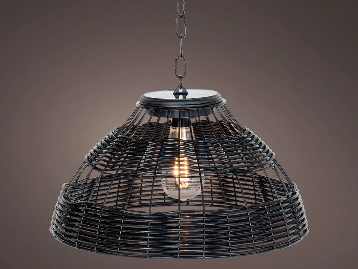 De hanglamp is gemaakt van metaal met riet. Met het geïntegreerde solar systeem kan de lamp voor 8 uur branden. Door middel van de haak en het aanloopsnoer van ca. 50 cm, kan de lamp overal in de tuin worden opgehangen.