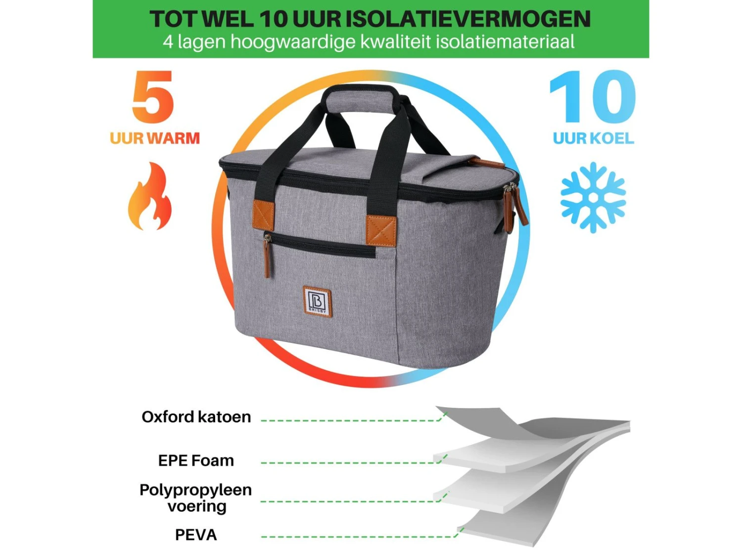 De koel- en boodschappentas is de beste in zijn soort qua isolatie, als je boodschappen gaat doen dan blijven de producten tot wel 10 uur gekoeld, zeker als de bijgeleverde koelelementen worden gebruikt. Comfortabele handvaten en schouderband