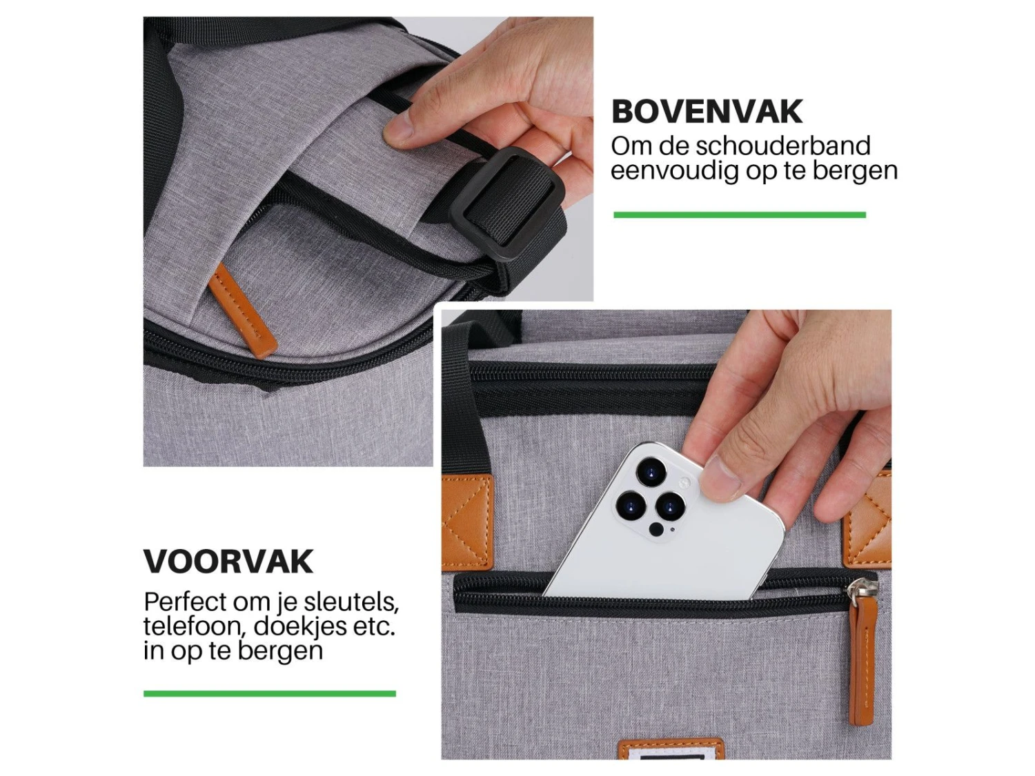 De buitenkant van de tas is waterafstotend, slijtvast en gemaakt van hoogwaardig materiaal. Dit zal helpen aan een extra lange levensduur van jouw tas. Afneembare binnenzijde