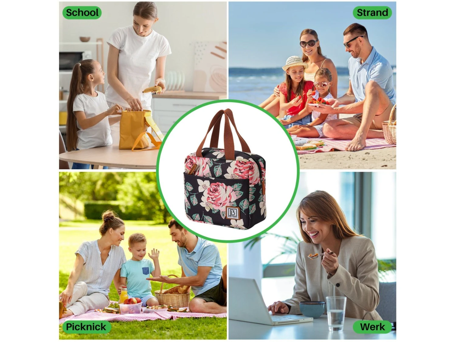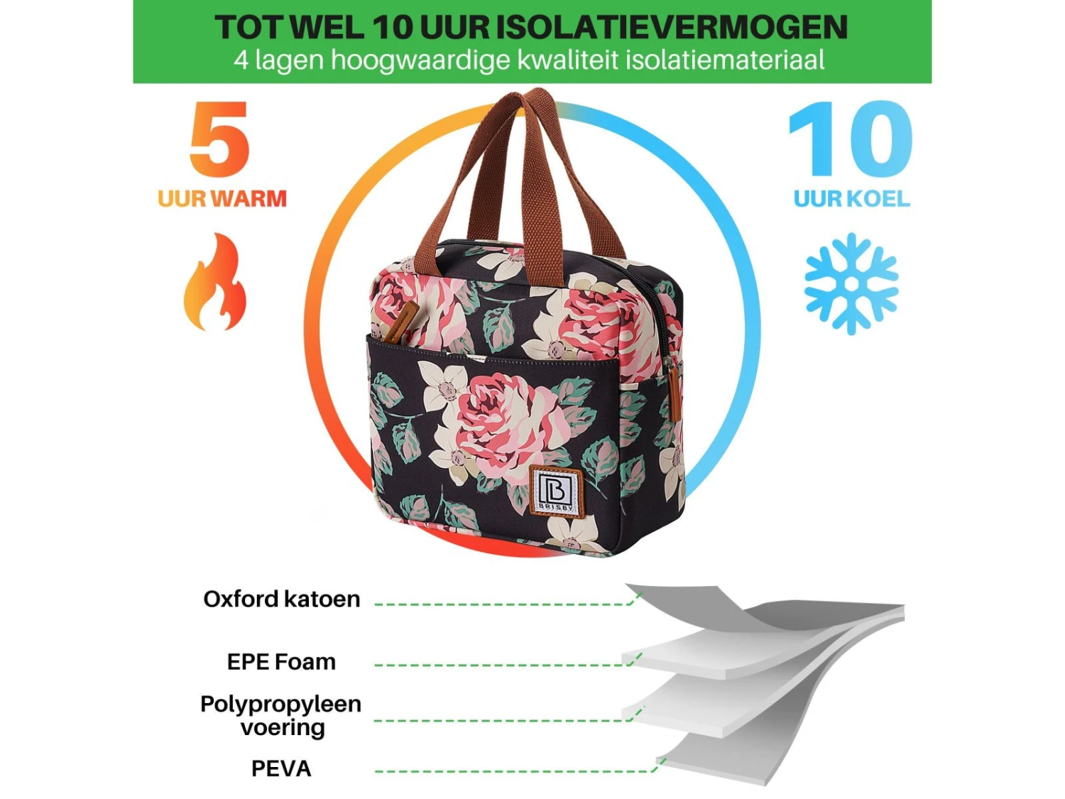 Ben je op zoek naar een topkwaliteit koeltas? Brisby 4 Laags Geïsoleerde Koeltas – Lunchtas 4 liter – Bloemetjes – Gratis koelelement – Koelen en warm houden