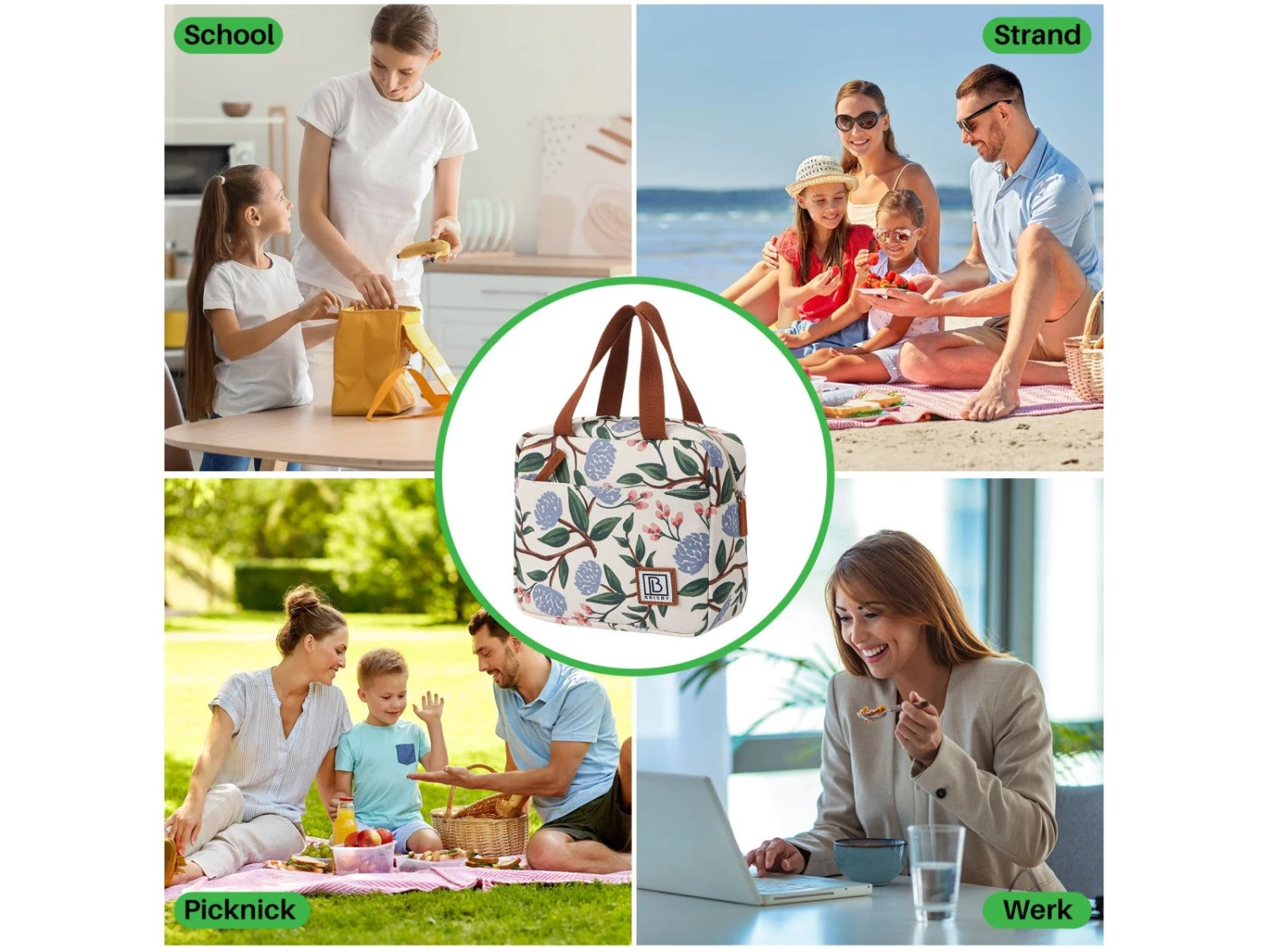 Ben je op zoek naar een topkwaliteit koeltas? Brisby 4 Laags Geïsoleerde Koeltas – Lunchtas 4 liter – Bloemetjes Wit – Gratis koelelement – Koelen en warm houden