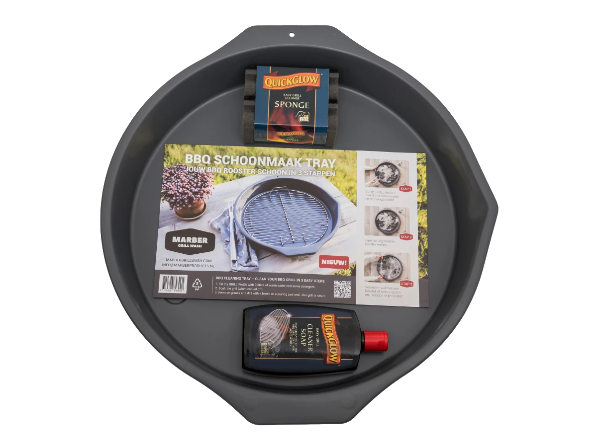 – de GRILL WASH – een fijne grote schoonmaaktray waar jouw rooster goed in kan weken Hier past elk rond rooster (let op: tm 48 cm diameter) perfect in – €24.95