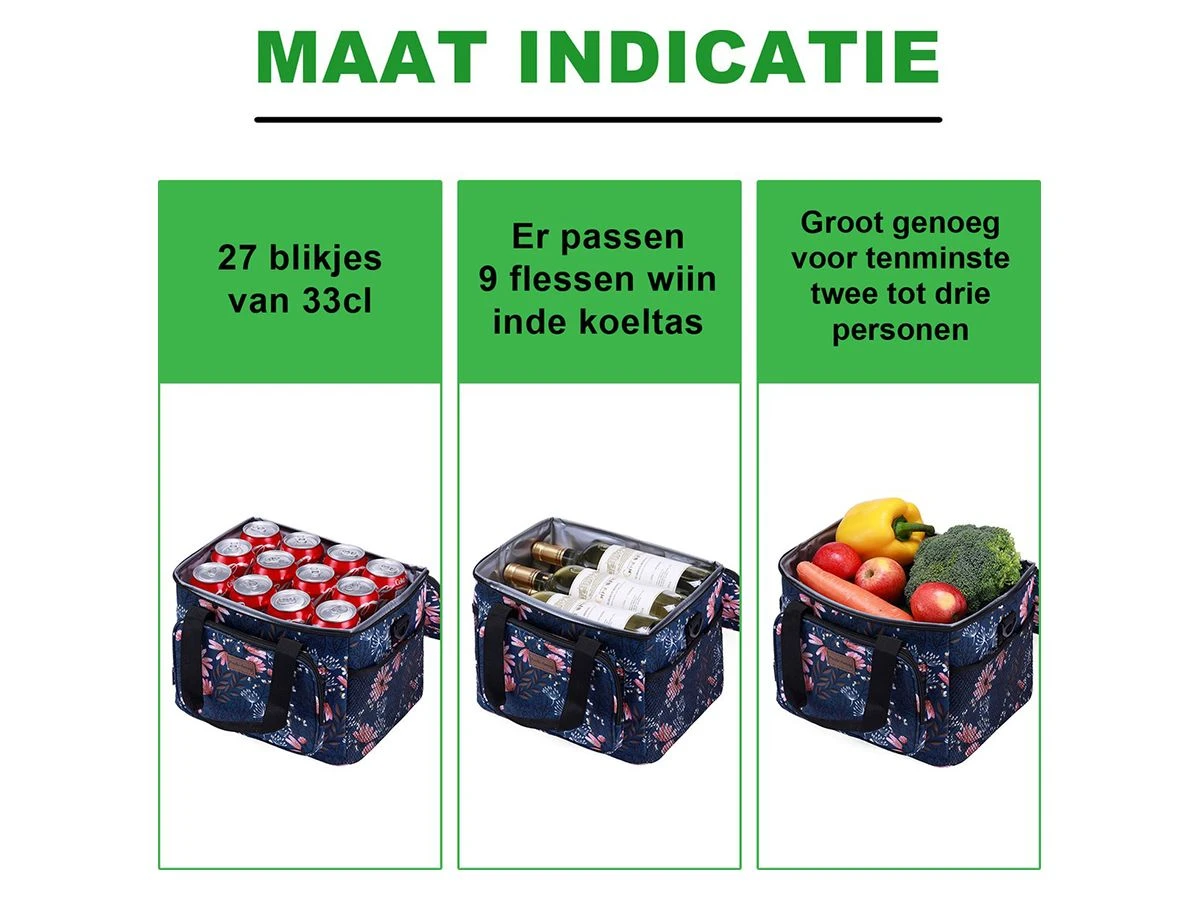 De buitenkant van de tas is gemaakt van waterafstotend materiaal met een hoge dichtheid. Het koelvak van de tas is gemaakt van dikke laag hoogwaardig PEVA-folie. Hierdoor kan je de tas makkelijk schoonmaken en blijft de inhoud tot wel 10 uur koel.