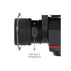 De koplamp is voorzien van een verborgen interne USB Type-C-oplaadpoort, waardoor het handig is om uw koplamp onderweg op te laden. Met een drukknop voor verschillende modi kunt u kiezen tussen een schijnwerper van 100% (450 lm) of 30% (120 lm), een schijnwerper van 600 lm of beide schijnwerpers + schijnwerpers van 1000 lm. De fakkel heeft ook een indrukwekkende straalafstand van maximaal 180 meter met maximaal 1000 lumen.