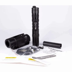 Bij Nitecore P10 V2 Tactische zaklamp – 1100 lumen – Zwart wordt een tactisch holster NTH10, clip, polskoord, 2x vervangende afdichtring en een magazijn voor een CR123 batterij meegeleverd.