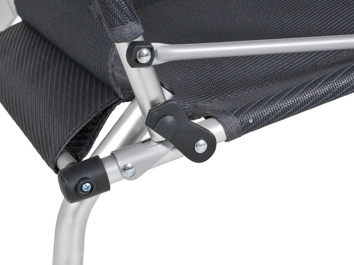 Deze stoel is plat op te vouwen waardoor hij weinig ruimte inneemt en makkelijk vervoert kan worden. Voor de veiligheid is de stoel voorzien van een safety-lock, dit zorgt ervoor dat de stoel niet zomaar in kan klappen.