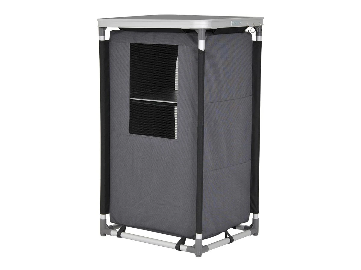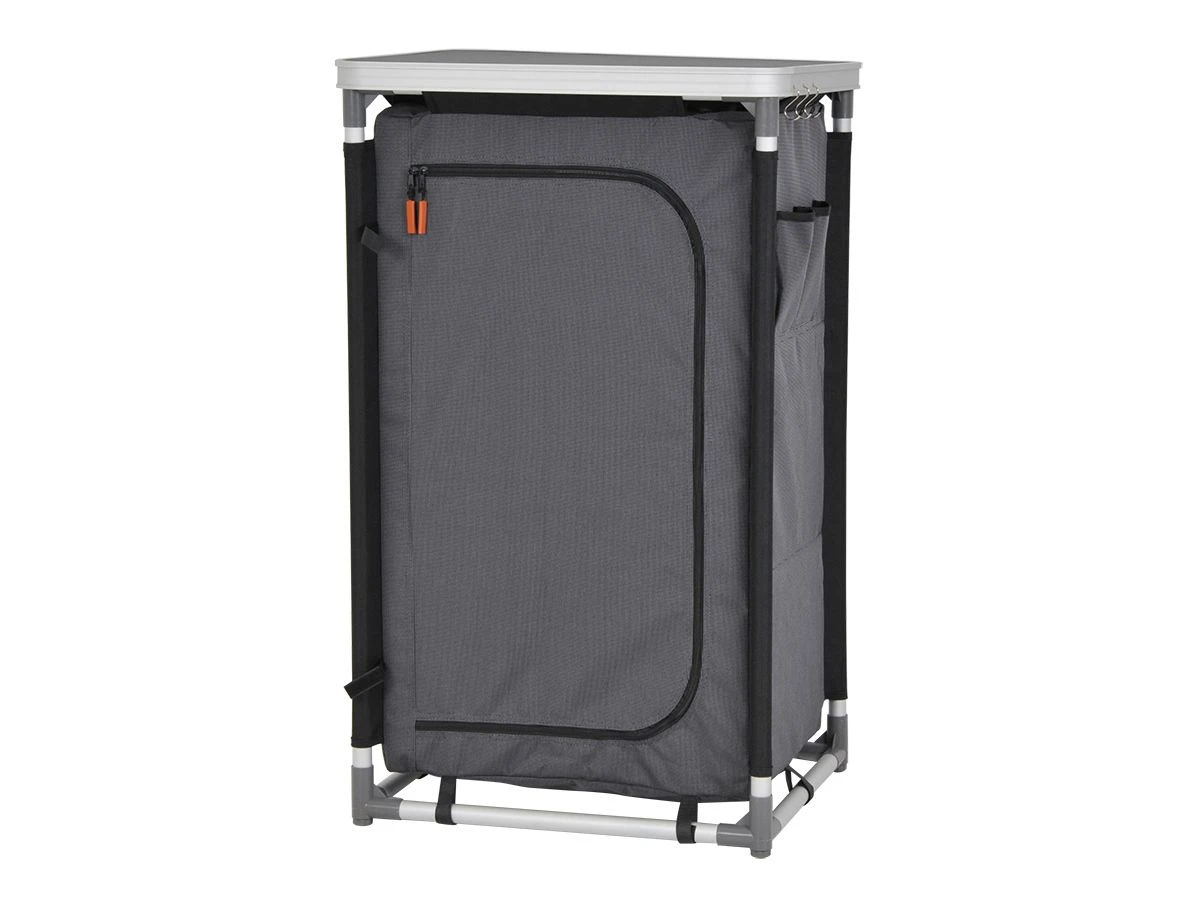 Kun je nog wel wat opbergruimte gebruiken? Maar heb je geen plek meer voor een grote kast? Kies dan voor de Dublin Luxe van Obelink. Voor dit compacte campingkastje is altijd nog wel een plekje te vinden in je (voor)tent. De kast heeft een afmeting van 57 x 47 x 97 cm en is voorzien van 3 legplanken die je met een ritssluiting kunt afsluiten. De achterzijde is voorzien van mesh gaas dat ervoor zorgt dat de kast goed geventileerd wordt. Aan de zijkant zitten nog 2 extra opbergvakjes en een aantal haakjes waar je bijvoorbeeld een vest of een handdoek aan kunt ophangen.