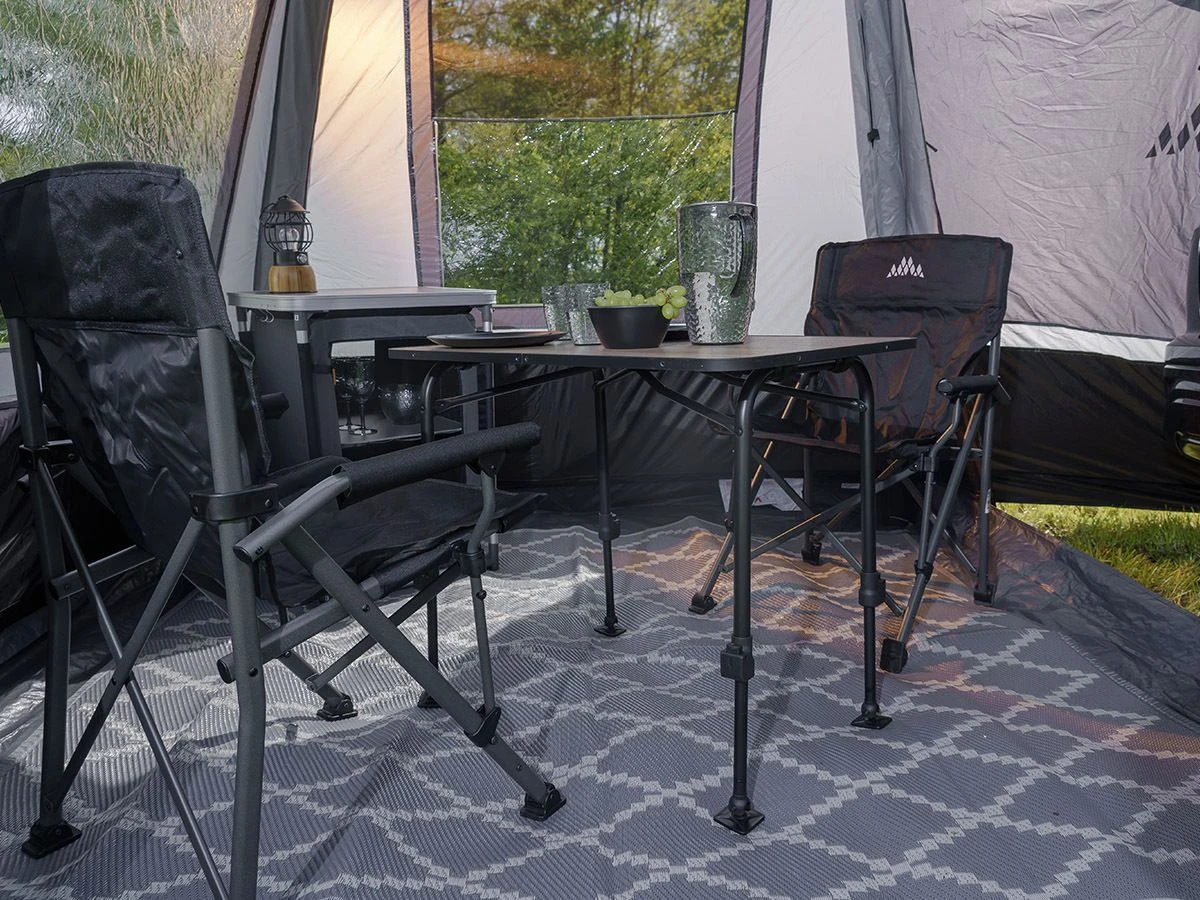 De Liverpool Luxe heeft een lichtgewicht aluminium frame met een polyster bekleding. Zowel het bovenblad als de legplanken zijn gemaakt van MDF en afgewerkt met een aluminium rand. De kast is voorzien van vier verstelbare poten zodat je de kast altijd waterpas kunt zetten op een ongelijke ondergrond. Zodra de vakantie afgelopen is kun je de kast eenvoudig uit elkaar halen en opbergen in de meegeleverde draagtas.