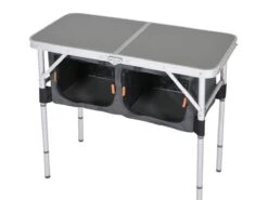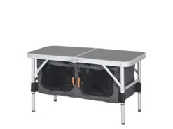 De Nancy campingkast heeft een stevig aluminium frame met een polyester bekleding. Dankzij het deelbare blad kan de kast eenvoudig worden ingeklapt tot een compact koffermodel, wat het opbergen en vervoeren zeer gemakkelijk maakt.
