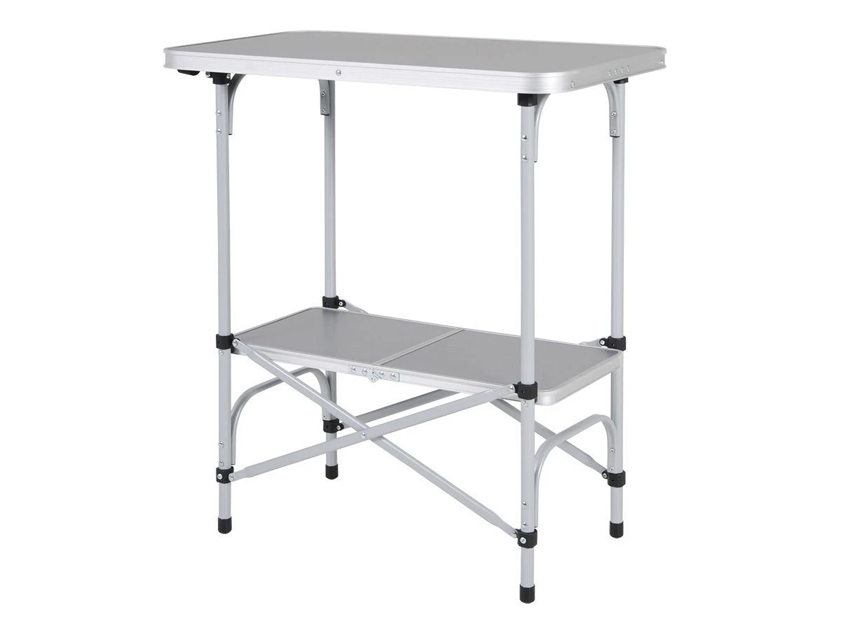 Deze kooktafel is voorzien van een aluminium werkblad, dit betekent dat het blad hittebestendig en watervast is. Ideaal om op te koken. Onder het tafelblad zit een extra blad waarop je je keukenspullen kwijt kunt.