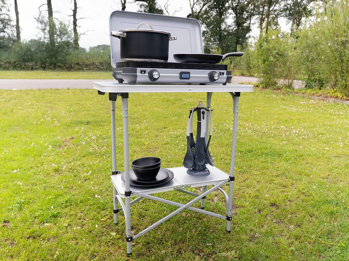 Ben je op zoek naar een eenvoudig kookmeubel die je makkelijk mee kunt nemen richting de camping? Dan is deze kooktafel van Obelink perfect voor jou!