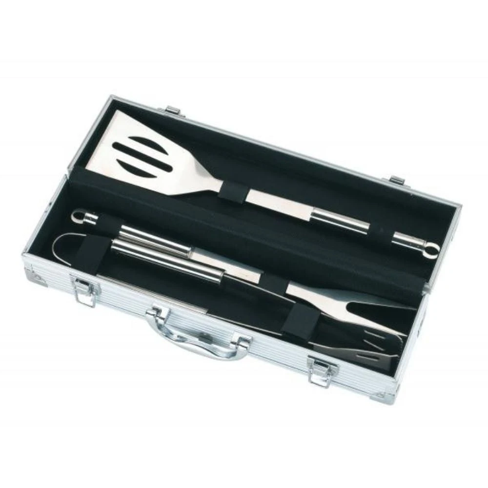 De Grillset in koffer is een zeer geschikte set voor de barbecue. De set bestaat uit drie onderdelen, een spatel, een tang en een vleesvork. Bewaar de set in de bijgeleverde luxe koffer, zo blijft de set netjes en compleet. Ook is het gemakkelijk de set mee te nemen door het koffertje. De set is volledig gemaakt van roestvrij staal.