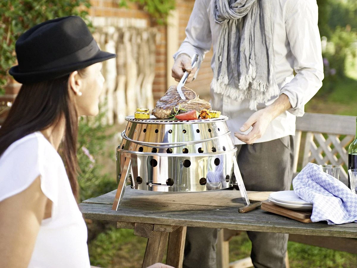 Na gebruik kun je de rocket stove eenvoudig weer inklappen tot een hoogte van slechts 15 cm.
