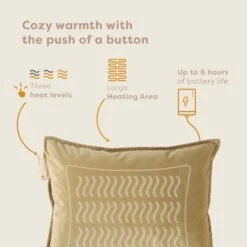 Dit warmtekussen in de kleur Crewel Tan is draadloos en daardoor makkelijk overal mee naar toe te nemen! Je kunt vrijelijk bewegen zonder vast te zitten aan kabels en je hoeft niet meer te zoeken naar een stopcontact Gebruik het kussen thuis, op kantoor of zelfs tijdens het reizen! Bovendien kun je met de lange batterijduur van wel zes uur, lang genieten van de warmte.