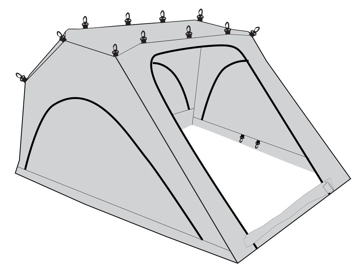 De thermo binnentent wordt met klittenband bevestigd aan de binnenzijde van de daktent en kan blijven zitten wanneer deze ingeklapt is.