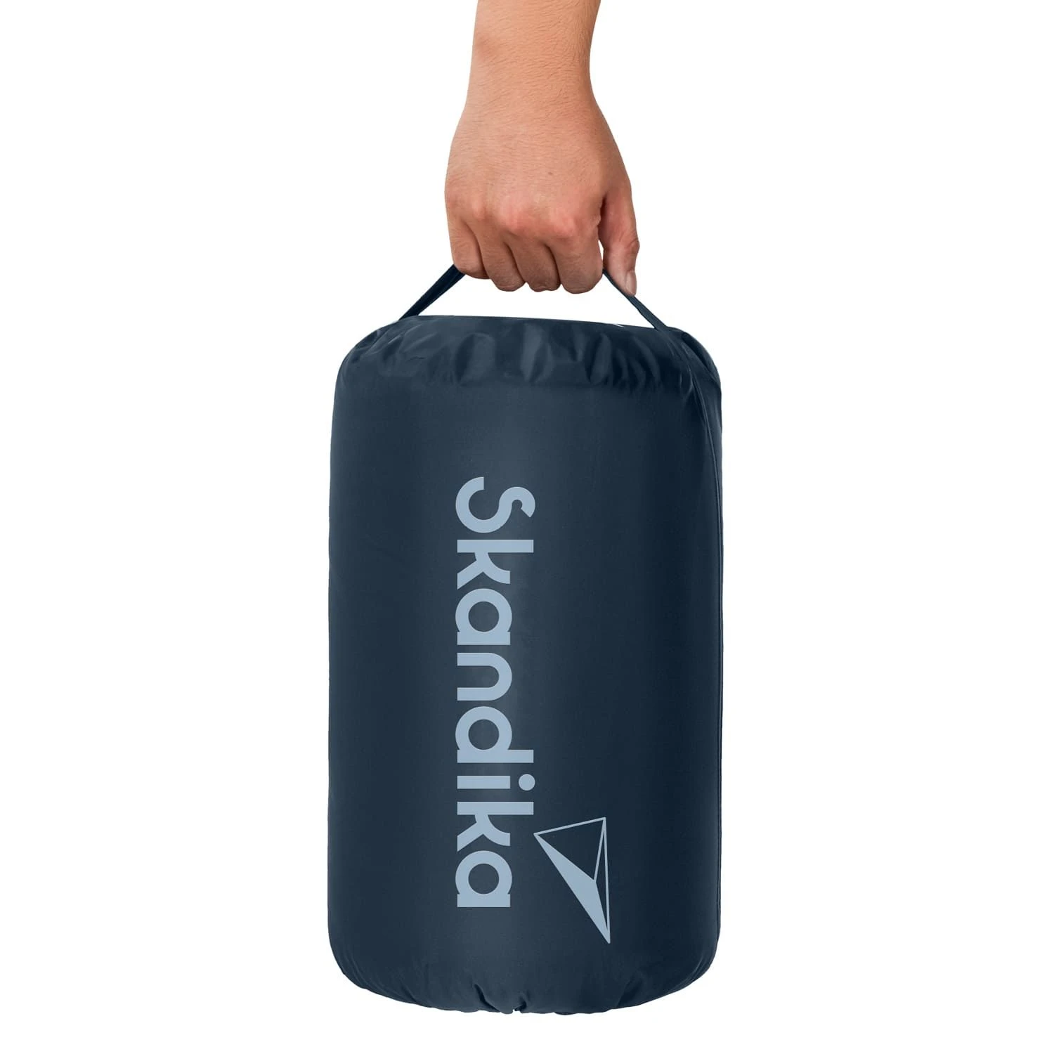 Opgerold neemt het kussen nauwelijks ruimte in beslag en met een nettogewicht van slechts 1,28 kg is het gemakkelijk te vervoeren. Het kan veilig worden opgeborgen in de meegeleverde draagtas tot het volgende gebruik.