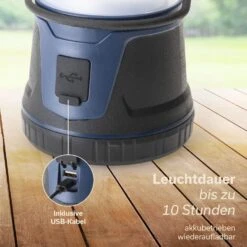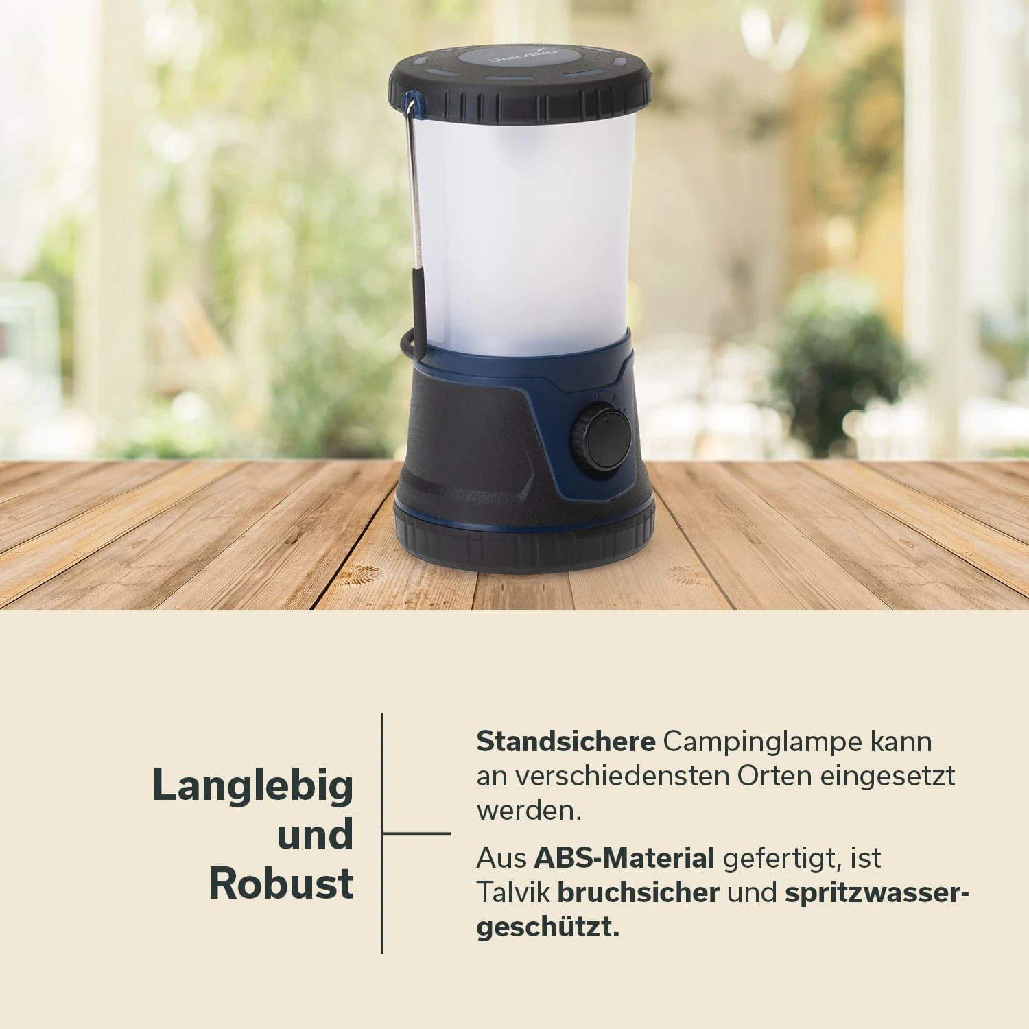 De robuuste lamp van onbreekbaar ABS-materiaal is spatwaterdicht en dus ideaal voor buitengebruik. In de hobbykelder, op de camping, tijdens een nachtwandeling of thuis in de tuin, de compacte Talvik campinglamp is gemakkelijk te vervoeren en zorgt altijd voor goed zicht.