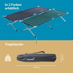 Het campingbedje is supercomfortabel met zijn royale ligoppervlak van 210 x 75 cm en een aangename hoogte van 42 cm, waardoor je er gemakkelijk op kunt staan. Vuoma is de optimale keuze voor iedereen die veel waarde hecht aan comfort en een goede nachtrust.