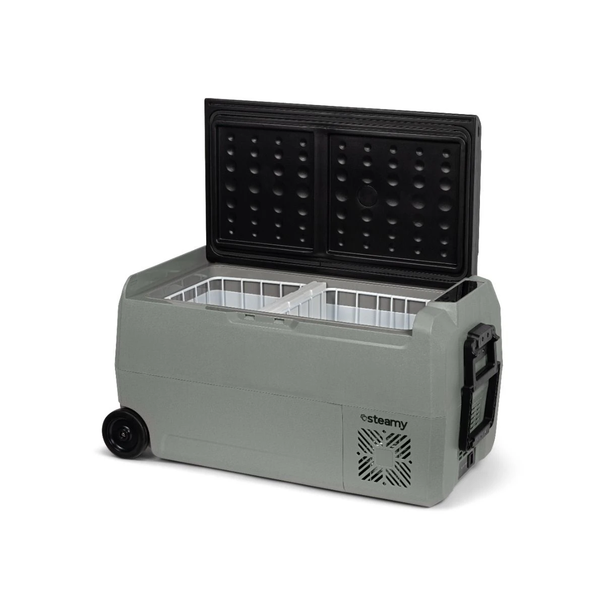 De Steamy SECT36 biedt dual zone temperatuurregeling middels het LCD-paneel, hierdoor kunt u elk compartiment afzonderlijk instellen als koelkast of vriezer. Middels de Steamy-E App kunt u de koelbox ook bedienen vanuit de luie stoel. De extra krachtige compressor biedt een snel, stil en efficiënt koelsysteem, waardoor de koelbox is in te stellen tussen de -20℃ en +20℃ per compartiment. U kunt kiezen voor een MAX en Eco stand voor ofwel extra snelle koeling of een efficiëntere koeling.