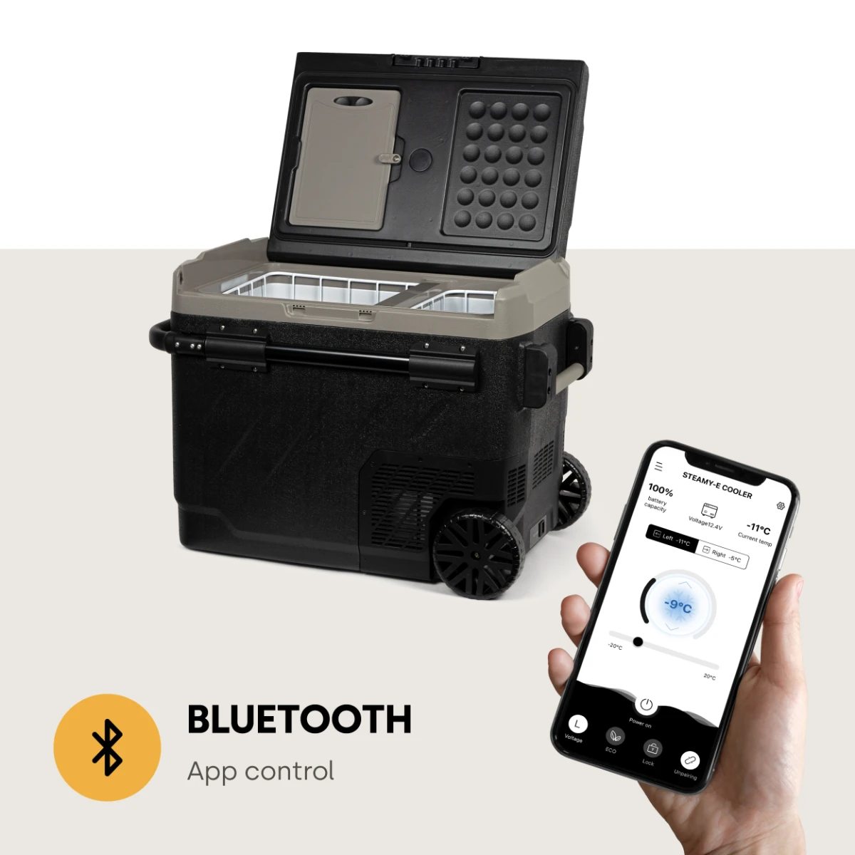 De SECZGW-serie heeft twee compartimenten die door middel van de krachtige compressor snel en efficiënt koelen. De twee compartimenten zijn los van elkaar te bedienen en in te stellen, zo kunt u bijvoorbeeld een vries- en koelvak nemen of twee vriesvakken, net wat u wilt. Beide vakken zijn in te stellen op elke temperatuur tussen de +20°C tot -20°C, dit kunt u zowel doen in de MAX Stand, voor extra snelle koeling of de Eco stand voor nog efficiënter stroomgebruik. Naast het paneel aan de zijkant kunt u de koelbox ook bedienen via de Steamy-E Cooler App, voor nog meer gemak.
