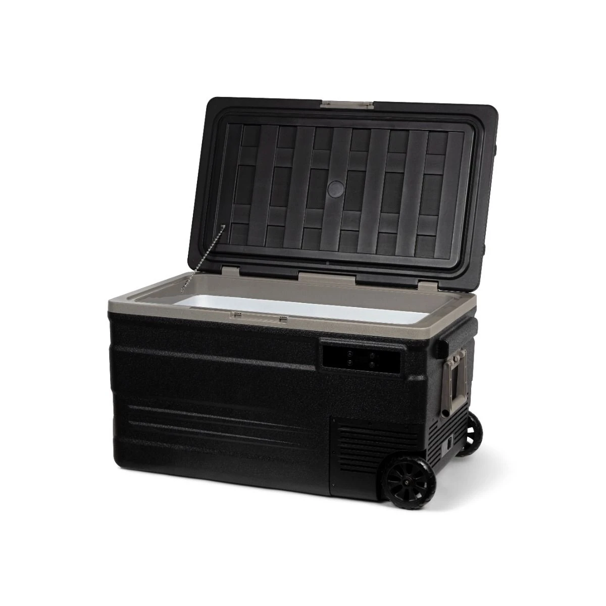 De krachtige compressor koelbox heeft verschillende koelmodi, zo is er een ECO modus voor zuinig energieverbruik en een AX modus voor extra snelle koeling. De koelbox is voorzien van robuuste wielen en een opklapbaar heavy duty handvat, zo kunt u de koelbox eenvoudig verplaatsen zelfs als deze helemaal gevuld is. Door middel van het LCD paneel aan de zijkant kunt u de koelbox instellen en bedienen.