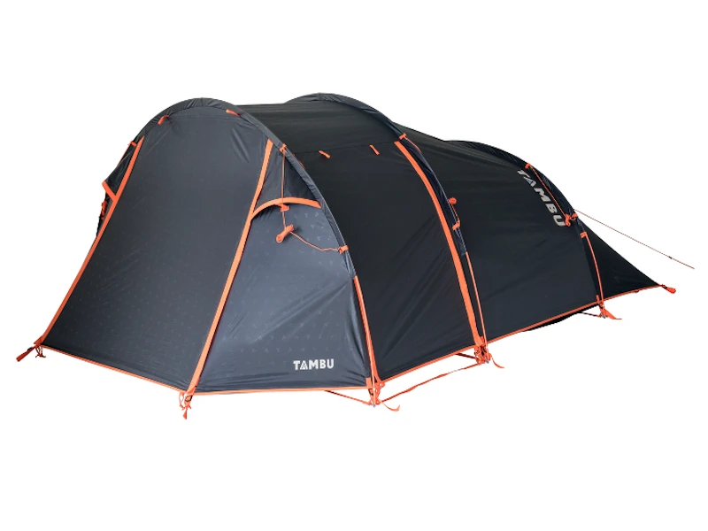 De buitentent en binnentent zijn gemaakt van 100% gerecycled polyester uit gebruikte PET-flessen. Er is een gaasinzet in de ingangsdeur naar het slaapgedeelte en een ventilatiesysteem met scheerlijnfunctie in het achterste deel van de tent, zodat u altijd frisse lucht in de tent hebt. Er zijn ook twee ophangpunten in de tent, waar u bijvoorbeeld lampen kunt bevestigen. De slaapcabine is voorzien van praktische zakken, zodat u kleine voorwerpen zoals uw mobiele telefoon gemakkelijk kunt opbergen. De JANGALA tunneltent is perfect voor een korte vakantie op de camping.