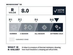 De MondoKing 3D biedt ons hoogste niveau van comfort en ondersteuning. Met 11 cm (4.25 inch) premium schuim combineert de ultra-cozy pad een pluche next-to-skin gevoel met een 7.0 R-waarde om u warm en comfortabel te houden in elke omstandigheid of seizoen. De StrataCore-constructie zorgt voor een verheven driedimensionale vorm en kan gemakkelijk worden samengeperst om ruimte te besparen in uw koffer of kast. Het extra-comfortabele zelfopblazende kussen is voorzien van het gebruiksvriendelijke TwinLock-ventiel, waardoor het kussen drie keer zo snel opgeblazen en vijf keer zo snel weer leeg is. Zoals alle Therm-a-Rest kussens wordt de MondoKing 3D in de fabriek gemaakt om de kwaliteit te waarborgen en de impact op het milieu te minimaliseren. Het kussen is voorzien van een handige opbergzak met ingebouwde pompzak.