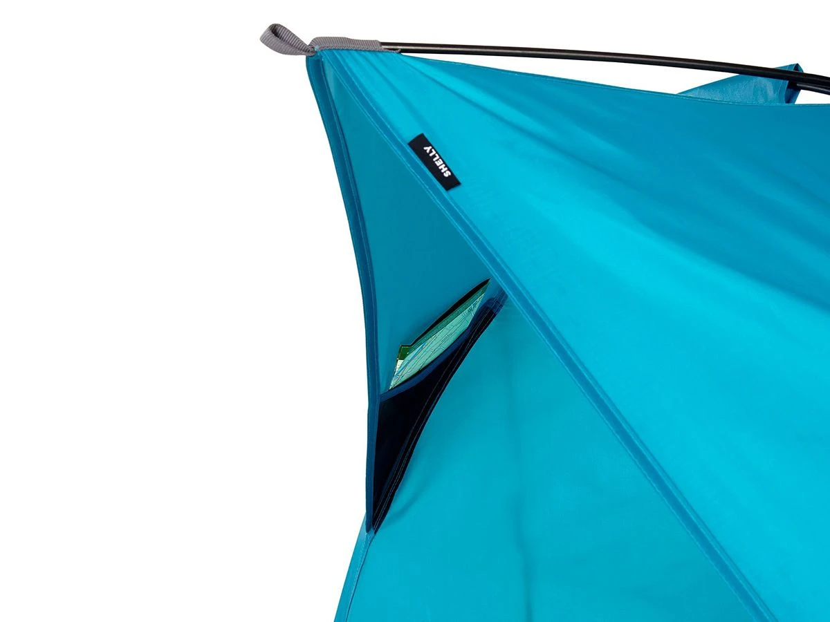 SHELLY is een kleine, lichtgewicht strandtent met een focus op zijn essentiële taak. De waterdichte buitentent biedt UPF 50+ en beschermt betrouwbaar tegen zon, wind en regen. De bodem is ook waterdicht. De zandzakken zorgen voor een veilige stand, zelfs bij winderige omstandigheden, en worden aangevuld met scheerlijnen en haringen.